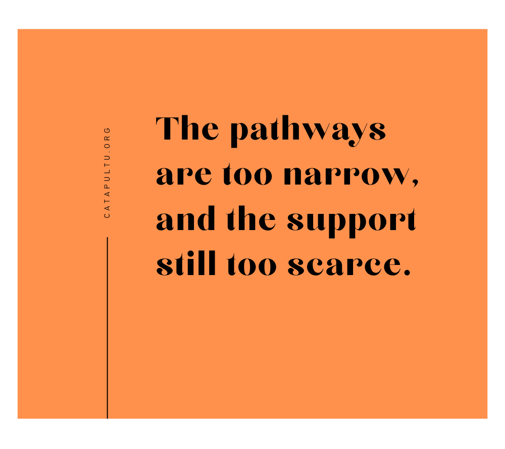 That’s why I founded CatapultU. I wanted to create a space that met people where they are—whatever their literacy level, job history, or budget. We offer free, usable, foundational courses designed to build confidence, grow skills, and empower adults who’ve been overlooked.